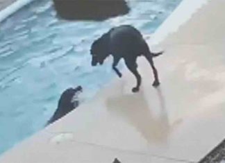Watch Dog Rush to Rescue Struggling Canine Friend After He Falls into Backyard Pool
