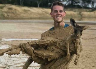 Teens Mount Rescue Operation For Helpless Kangaroo Stuck in Neck-Deep Mud