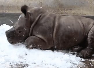 Baby Rhino’s Reaction to Being Around Snow For The First Time is the Daily Pick-me-up You Need