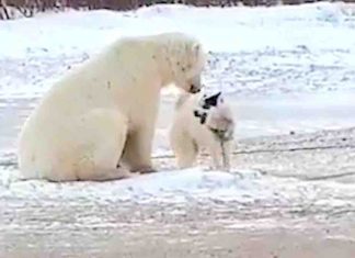 Watch This Friendly Encounter Between a Polar Bear and Sled Dog