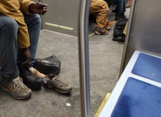 Stranger Gives the Boots Off His Feet to Freezing Homeless Man on the Subway