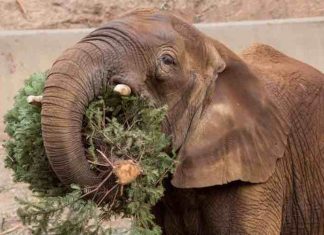 Watch Elephants and Lions Frolicking on Donated Leftover Christmas Trees