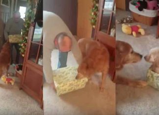 Watch Joyful Reaction of Old Dog Being Given a New Puppy Friend For Christmas