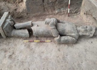 Door Guardian Sculpture Discovered at Angkor Archaeological Park