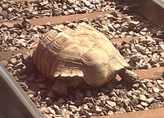 3-Foot Giant Tortoise Saved From Train Tracks Thanks to Determined Woman Who Spotted the Escapee