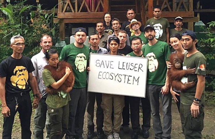 Leonardo DiCaprio, Adrian Brody, and Fisher Stevens made a trek to the lowland rainforests of Indonesia’s Leuser Ecosystem in Sumatra this week to protest the construction of palm oil factories.