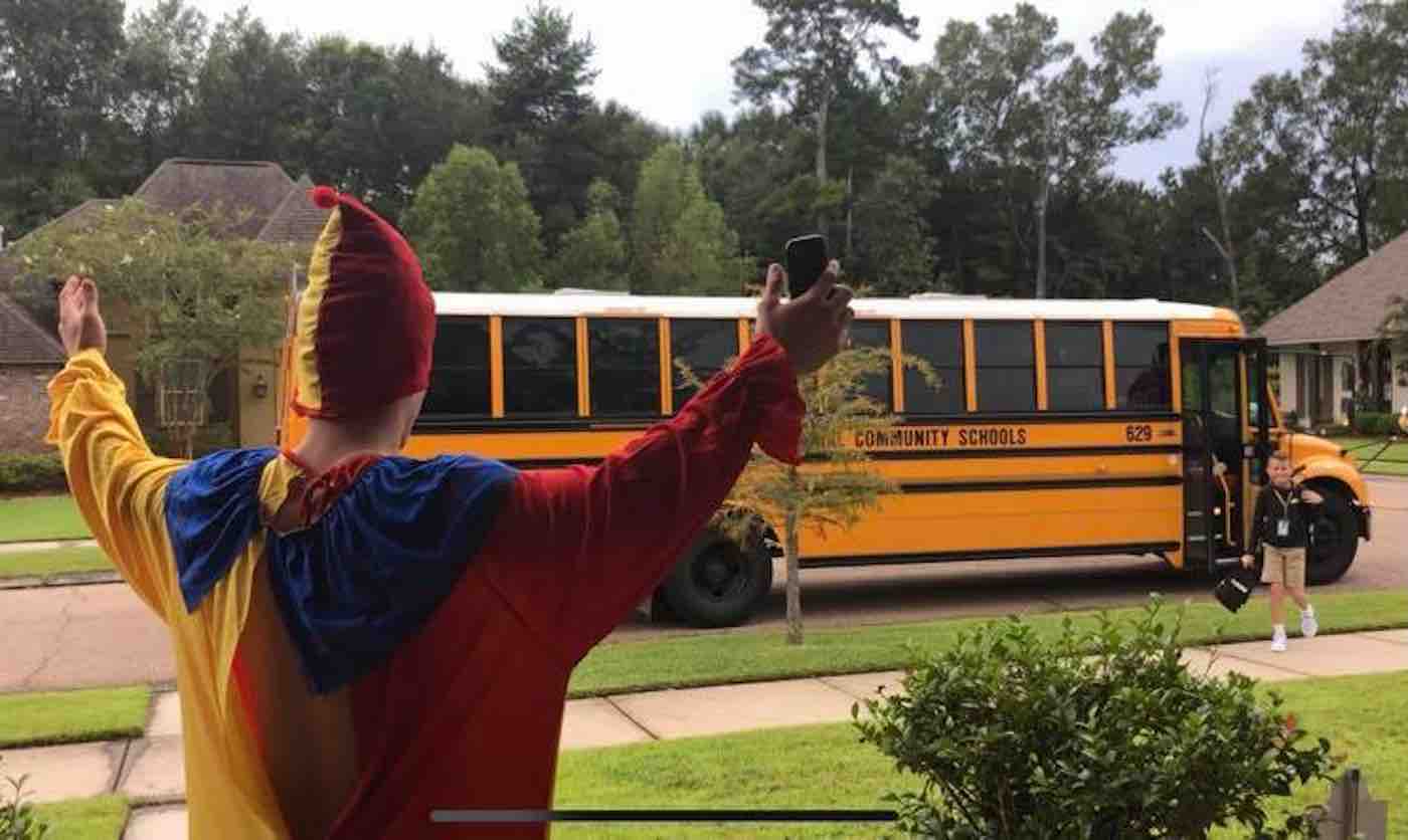 A 17-year-old in Louisiana has made a daily tradition of greeting his little brother Max at the bus stop—and always surprising him by wearing a different outlandish costume every day.