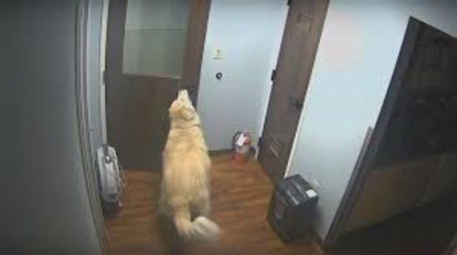 General is a Great Pyrenees who was kept in a kennel at the Aquia-Garrisonville Animal Hospital in Stafford, Virginia while his family was on vacation. The hospital’s security footage captured on Sunday night shows the pup opening four different doors – one of which he opened with his mouth – in order to escape.