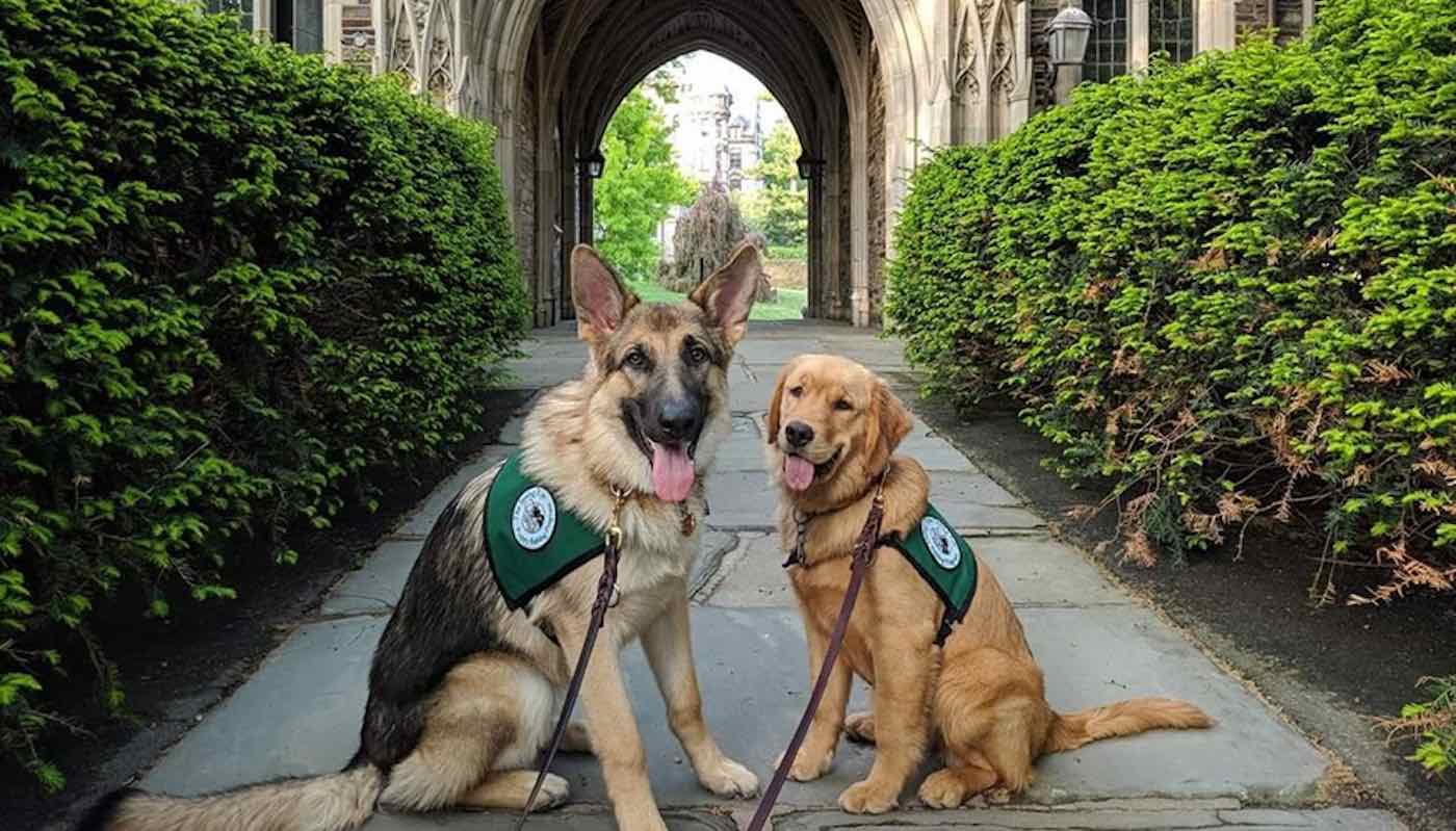 College can be a stressful time for aspiring young academics – but one university has found a perfect solution for easing the minds of anxious students while simultaneously preparing puppies for their own canine careers.