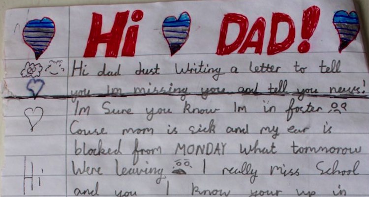 The note – addressed to a deceased father in heaven – contains a Christmas list written by a loving child.