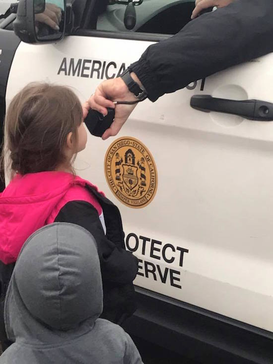 That’s when Officer James Weaver parked next to the youngsters and asked if they would like to say a few works to their dad over the speakers. Thrilled at the opportunity, the tots got to say “Bye daddy, we love you!” before the ship sailed away.
