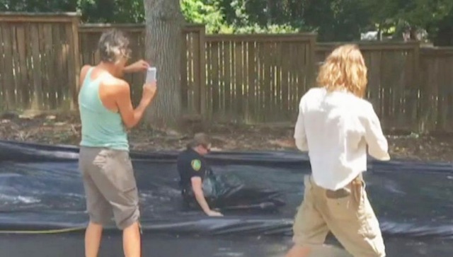 The North Carolina cops were deployed to an Asheville Fourth of July party because of a slip and slide that had been constructed in the road.
