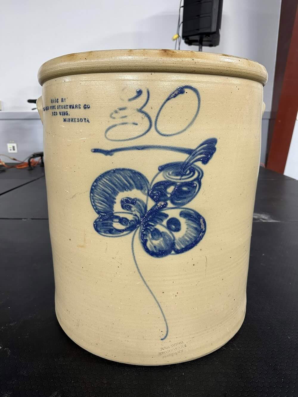 When he saw the huge 30 gallon Red Wing crock and looked closely at the details, he knew this would be the darling of the auction.