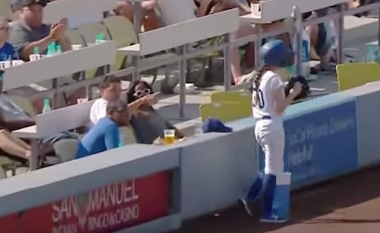 A ball girl at the Dodger Stadium in Los Angeles, California prevented certain disaster when she caught a 103 mile per hour fly baseball that was headed straight towards a fan who was not paying attention.