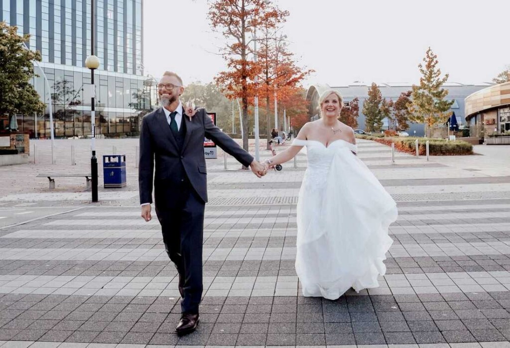When it came time for the photos, they both knew that one had to be atop the pedestrian crossing where she first laid eyes on him as he laid there in her arms.