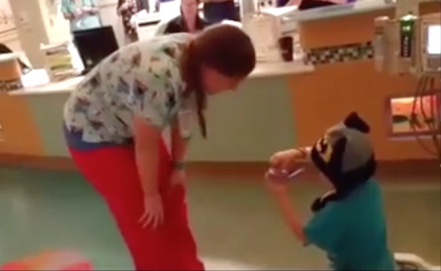 While Gideon Robinson was battling leukemia at the Rady Children’s Hospital in San Diego, one of the IVs must have been Cupid’s arrow because on January 27th, the 5-year-old boy felt compelled to get down on one knee and propose to his favorite nurse.