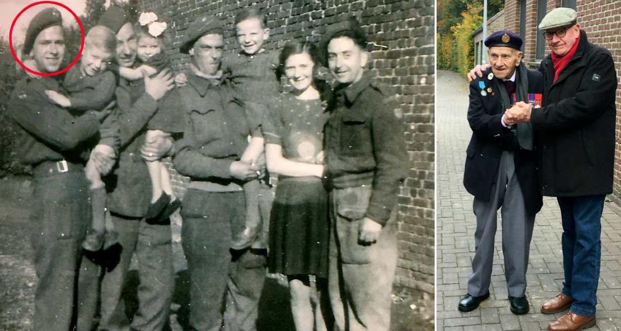 A 98-year-old D-Day veteran has recreated a photo taken with a Belgian boy whose family took him in 76 years ago.