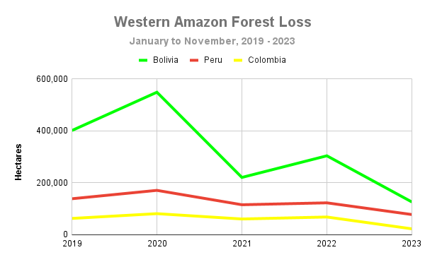 Bolivia also saw a drop in the rate of forest loss by 60% despite battling several severe wildfires.