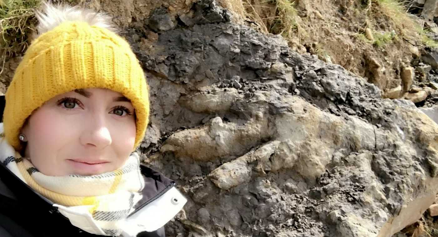 29-year-old Marie Woods was foraging for her dinner on Saturday when she stumbled upon an enormous footprint, believed to be around 165 million years old.