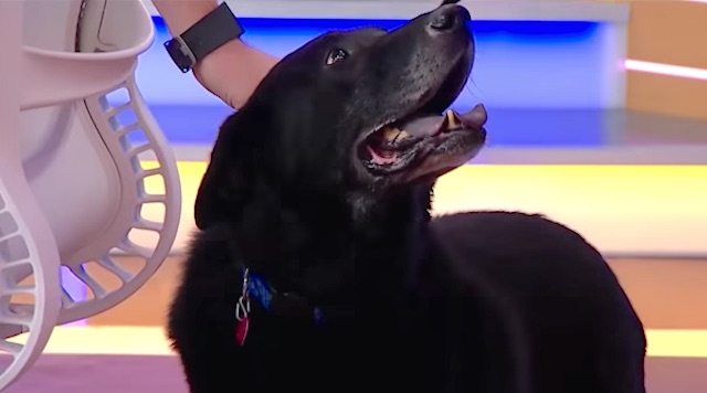 “I was here to talk about that but I’ve just discovered there’s a dog needs adopting, so I’d rather use my segment to get him adopted,” Gervais said as he scratched the ears of the recently rescued Chow and Labrador Retriever mix. “I’m not leaving until we get a phone call this guy’s adopted. He was chained up for 15 years.”