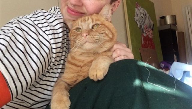 Curious over her pup’s persistence, she peered into the manhole cover only to see an orange tabby cat trapped below. Colette recognized the feline as the cat from several lost posters that had been plastered around the city for weeks.