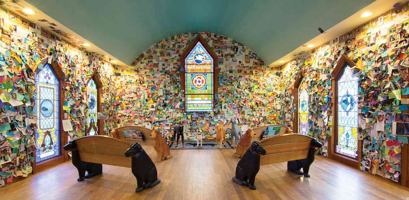 But it’s perhaps the chapel that has become most famous, with its walls festooned by notes, pictures, and poems commemorating beloved canine friends who have passed away.