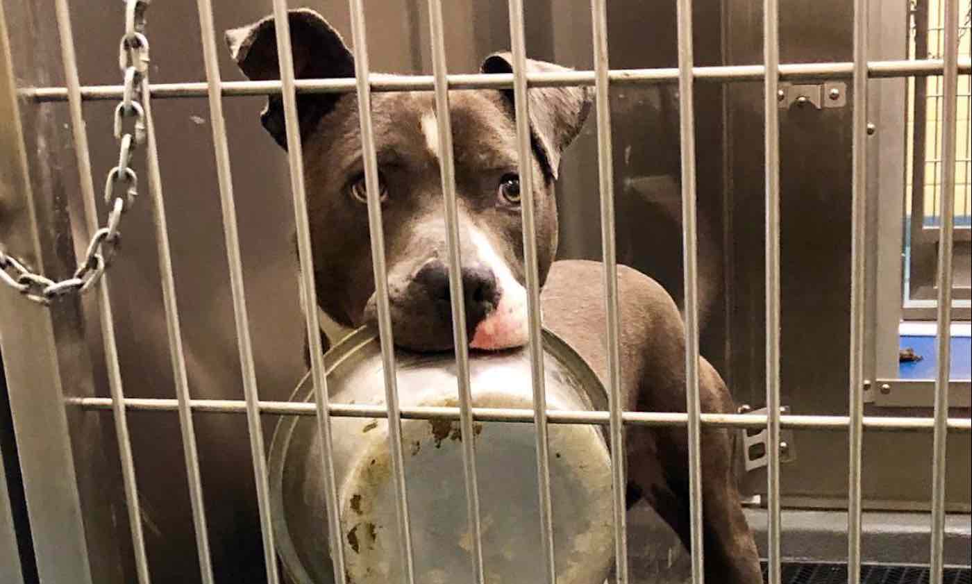 One of the shelter employees was particularly endeared to the dog after she walked by his kennel and saw that he was lovingly carrying his food bowl in his mouth. The employee filled up the bowl, thinking that he was carrying the container because he had not been given enough food.