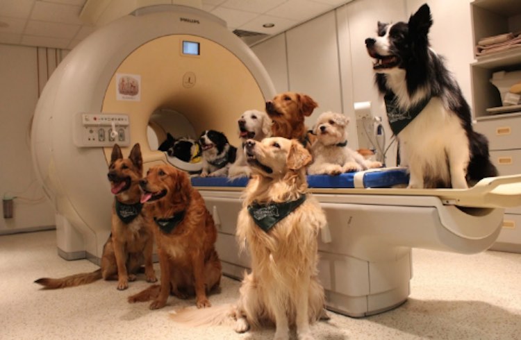 Through pre-recorded tapes, the hounds listened to their trainers recite different phrases in angry, neutral, and happy tones of voice while they were in the machine.