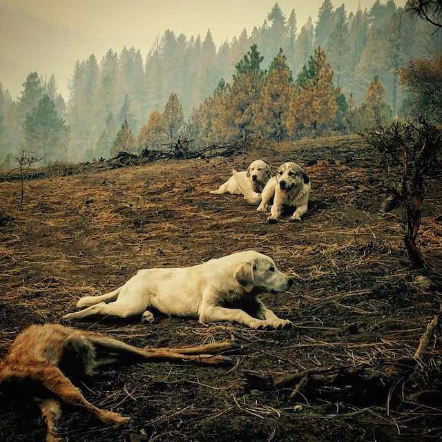 “Lots of destruction and sadness in the Kamiah area— I found this dead fawn this morning. An hour later this sheep dog and her 2 pups are here protecting it. They have been here for hours and won’t leave – barking at people that come near (although they are very nice).”