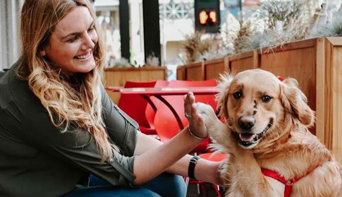 Judge is her 1-year-old Golden Retriever, a pup distinguished by the mark on his muzzle that looks like a black smudge.