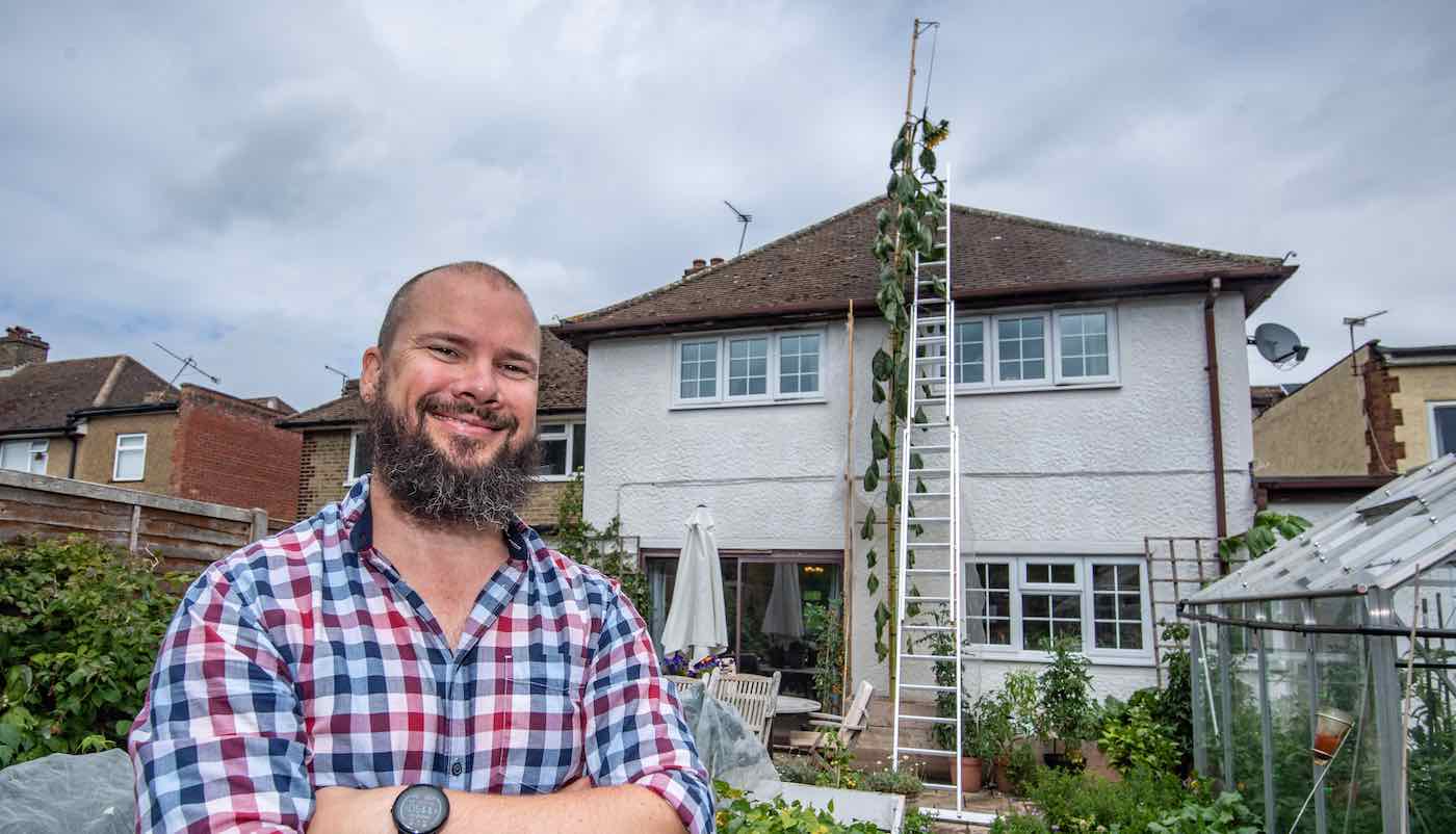 The 42-year-old’s four-year-old son Stellan certainly got his wish. The gardening project turned into a 20-foot high monster plant that almost dwarves his two-story home in Stanstead Abbotts, England.