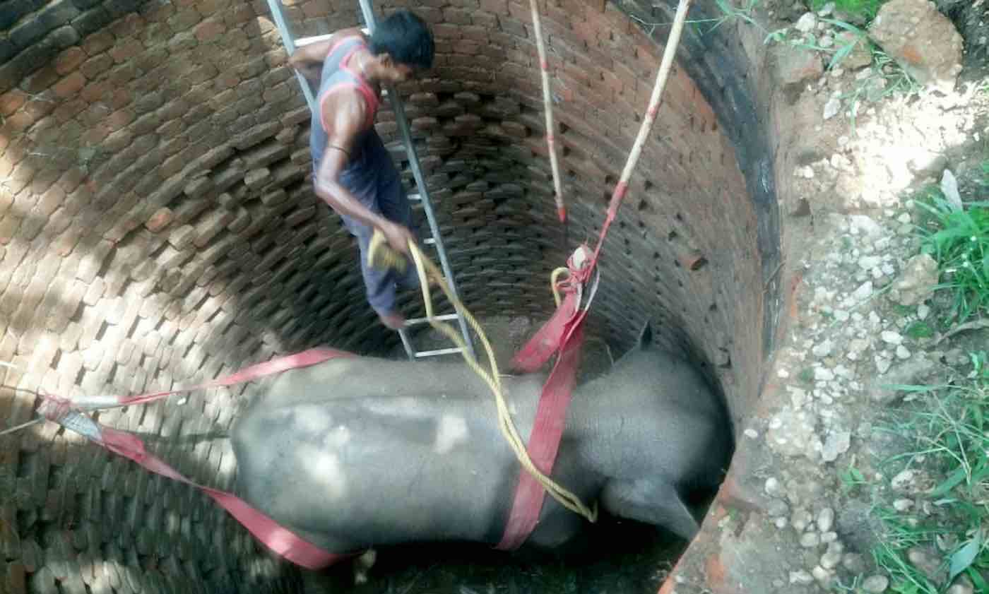 Army officials realized the elephant was trapped inside the well after hearing a noise coming from deep inside.