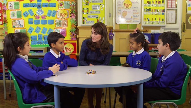 That’s why the Duchess of Cambridge is devoting time to a model program that gives kids a safe place in school to express and learn about emotions. As patron of the charity Place2Be since 2013, she sat down with some 10-year-olds for a serious heart-to-heart discussion to mark the start of the first UK Children’s Mental Health Week.