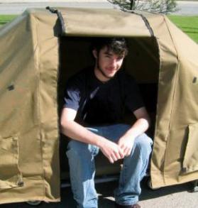 “This is one of the greatest damn gifts you could ever give to anybody,” homeless man Christopher Raynor says of the pop-up tent contraption, a snug mobile shelter called an EDAR (Everyone Deserves a Roof), invented to be a cross between a shopping cart and a pop-up camper. (Los Angeles Times has the full report w/ photos)