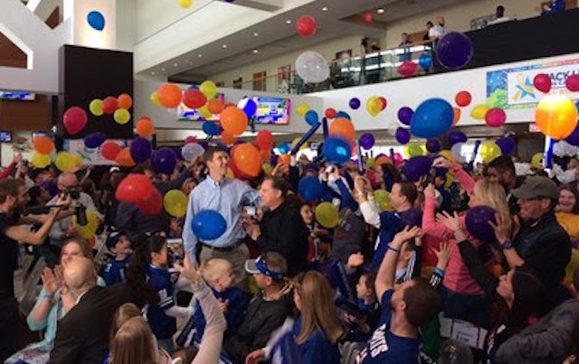 More than 500 youth and community groups joined stars from the world of sports to celebrate raising more than $250,000 as part of “Eli’s Challenge,” a campaign led by the star football player.