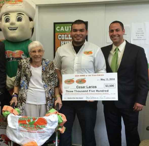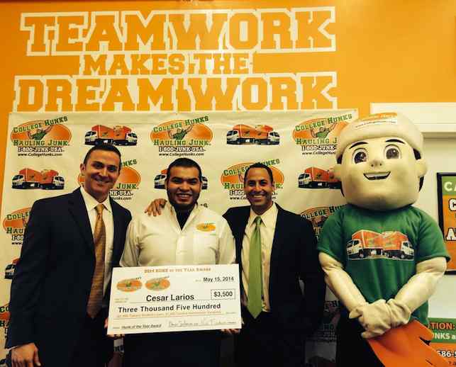 The co-Founders of College Hunks Hauling Junk publicly thanked their heroic team member, Cesar Larios during their 9-year Anniversary and Founder’s Day Celebration, saying the company’s new mantra was, ‘What Would Cesar Do.’