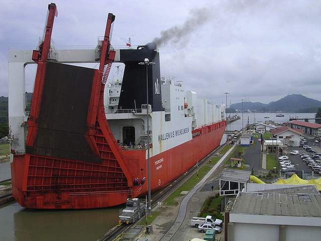 The series of locks and manmade lakes constructed by France and the U.S. connected the Atlantic and Pacific Oceans, eliminating the need for a lengthy, hazardous route around South America. (1914)