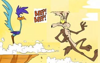 Always taking place in the natural habitat of the southwest American desert, one running gag involved the Coyote falling from a high cliff. After he goes over the edge, the rest of the scene, shot from a bird’s-eye view, shows him falling into a canyon so deep, that his figure is eventually lost to sight, except for a dust cloud rising from the canyon floor where he hits—sometimes followed by an anvil.