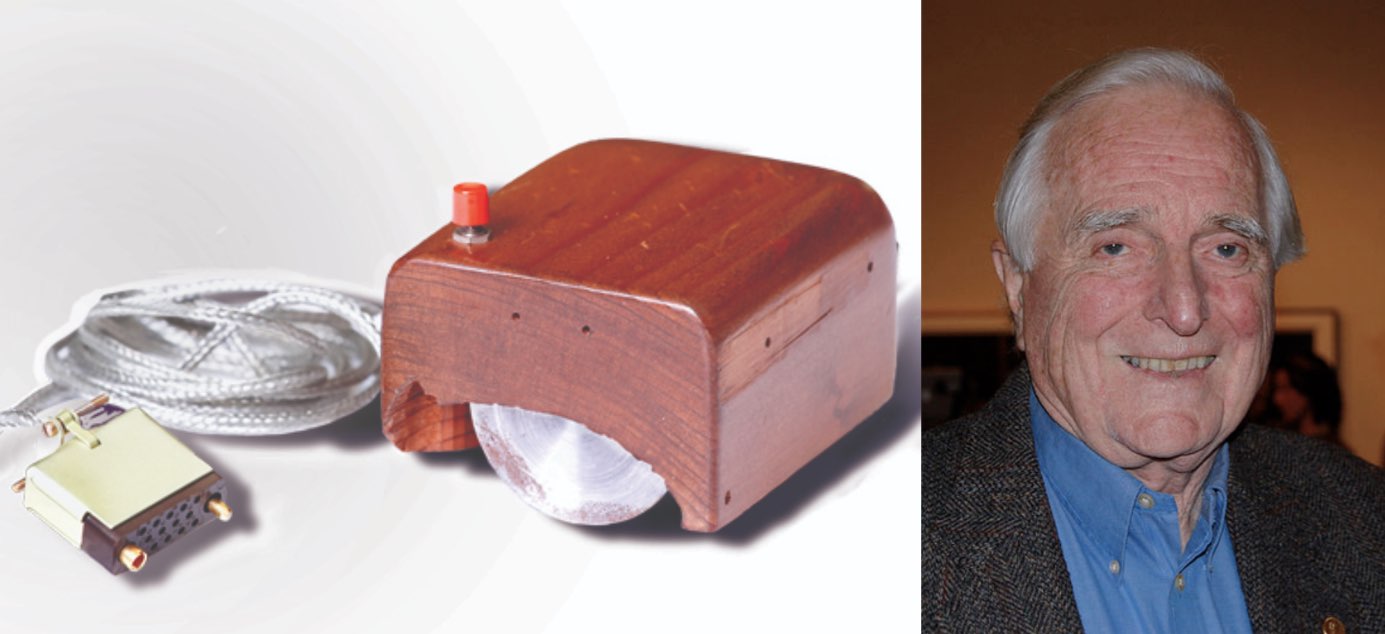 Described in the patent application as an “X-Y position indicator for a display system”, it consisted of a wooden shell with two metal wheels, and was nicknamed the ‘mouse’ because the tail came out the end.