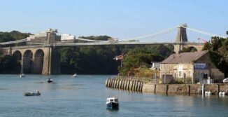 A triumph for its designer and engineer Thomas Telford, it was the biggest suspension bridge in the world at the time. Sixteen huge chains held up 579 feet of deck, allowing 100 feet of clear space beneath for tall ships navigating the seaway underneath.