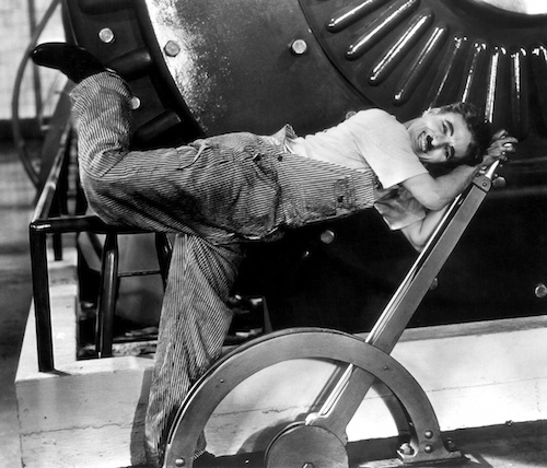As a factory worker employed on an assembly line, Chaplin endures the dreary conditions many people faced during the Great Depression. Expected to keep pace on an accelerating assembly line, he tries to screw nuts onto pieces of machinery, whizzing past, but ends up suffering a nervous breakdown. He runs amok, throws the factory into chaos, and lands in jail where he gets into more mischief.