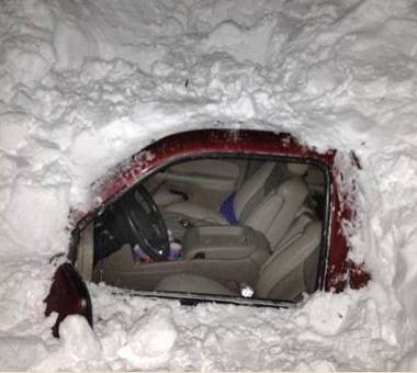 Rescuers had to dig through 4 feet of ice and snow along the roadside to free the parents and their 5-year-old daughter, whose Yukon got stuck on U.S. 56 while in route to a ski holiday.