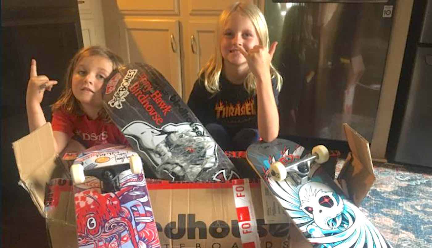 Cooper and his 9-year-old brother Tucker are both avid skateboarders because of their father Robby Morgan, who started skating with his own younger brother when they were children—so when he and his kids received a package containing three new skateboards from Hawk earlier this week, they were floored.