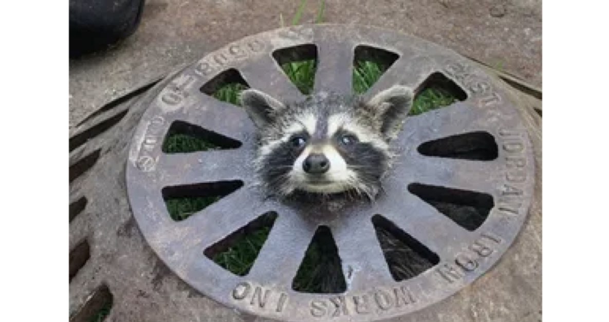 Macomb County Animal Control called the Harrison Township Fire Department and when they arrived they were perplexed to see the raccoon with its head stuck in a sewer cover.