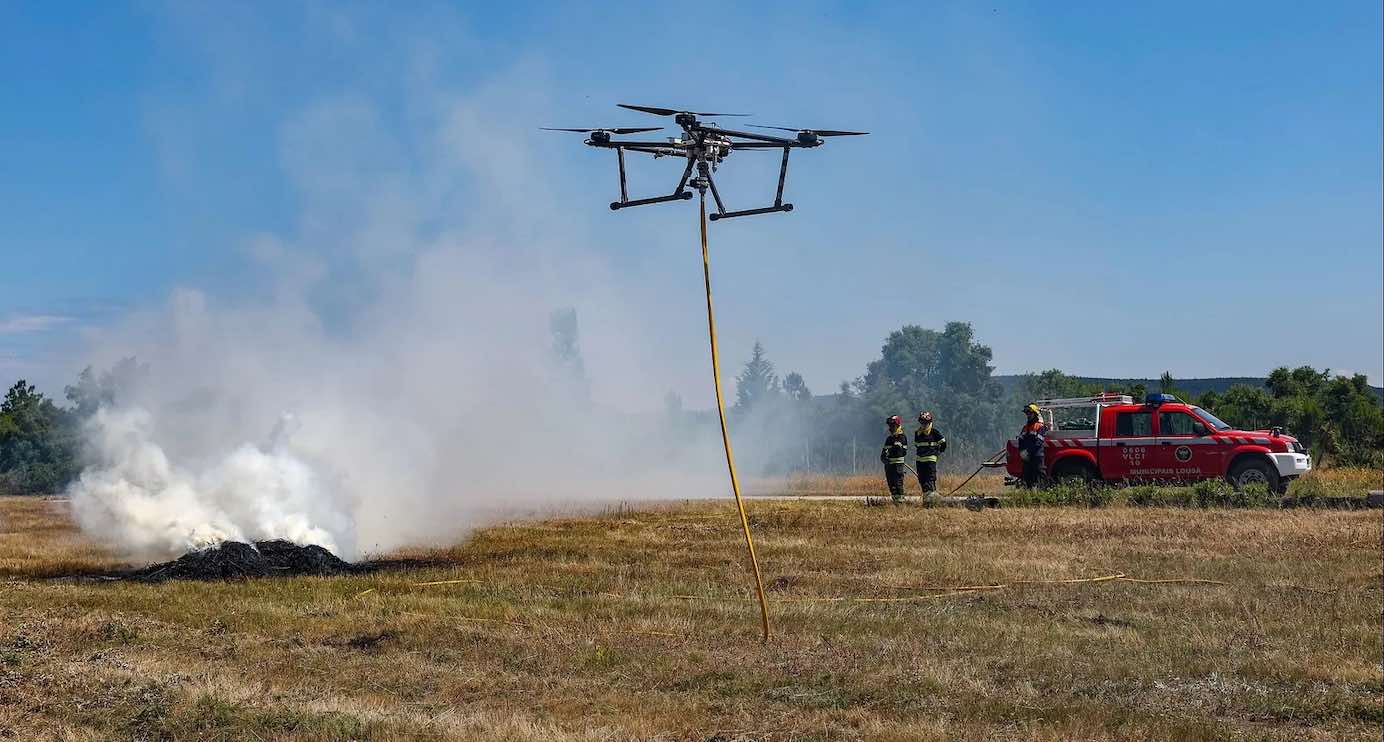 In one of Europe’s technical centers for firefighting research, a nimble drone that can carry a fire hose is being tested for quick-response firefighting.