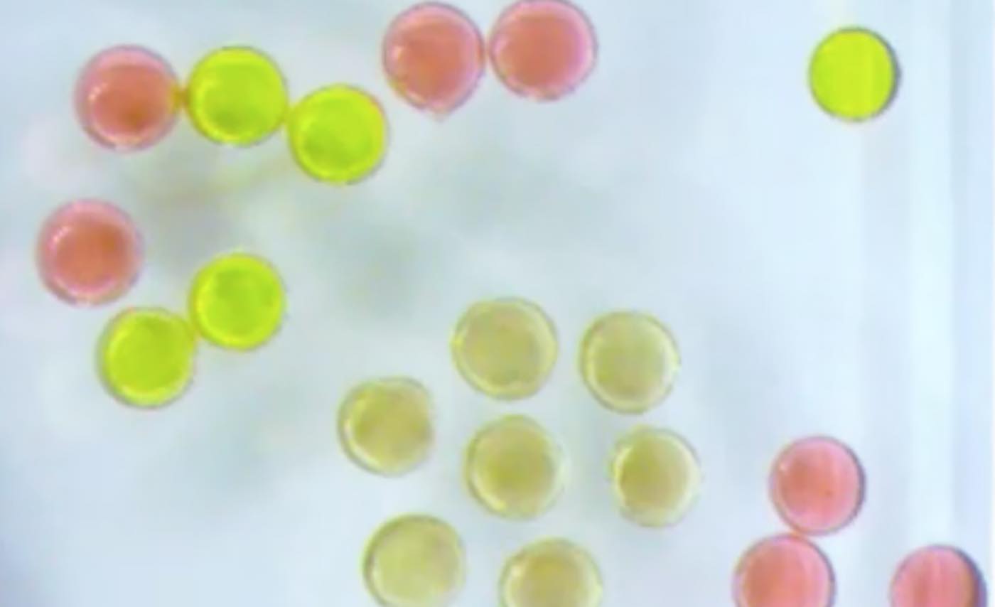Like synchronized swimmers, the droplets gravitated toward each other in perfect unison, forming an elegant swirl “like little dancing droplets,” said Liu. (See video below…)