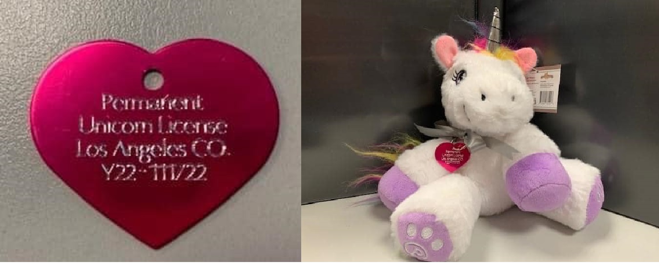 In response, DACC sent an emblazoned “Permanent Unicorn License,” in fuschia-colored metal, alone with a white unicorn plushie with pink hooves and a silver horn.