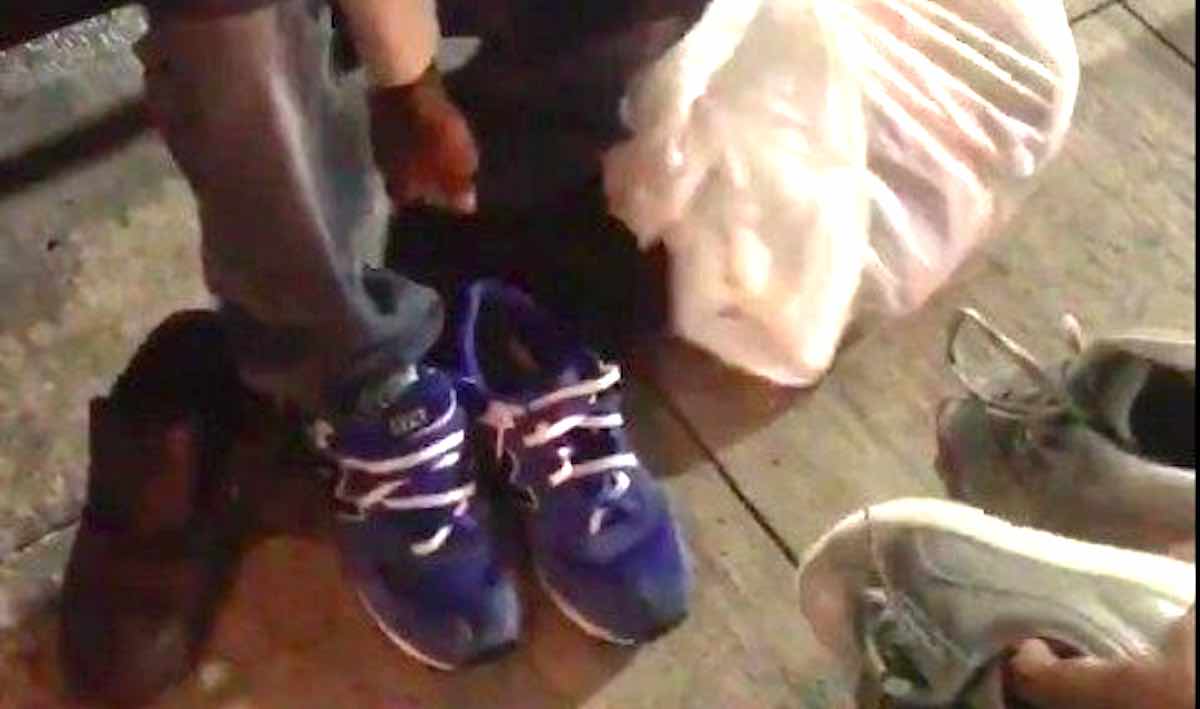 Johnson then leaves and comes back with two pairs of new shoes. He offers one of the boxes to the homeless man while a woman who says she is the athlete’s sister films the exchange with her phone.
