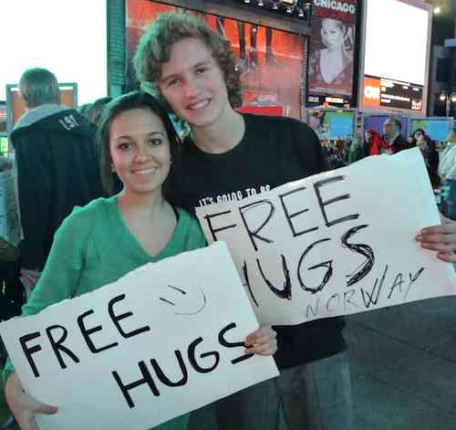 This video, posted on You Tube four days ago, documents a “Free Hugs” campaign staged in a busy pedestrian square in Sydney, Australia.