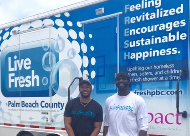 Chris Bentley and Carlos Miller, African-Americans living in the city who have been friends since middle school, started the nonprofit called Live FRESH (Feeling Revitalized Encourages Sustainable Happiness) which now serves showers to hundreds of transients in the area.